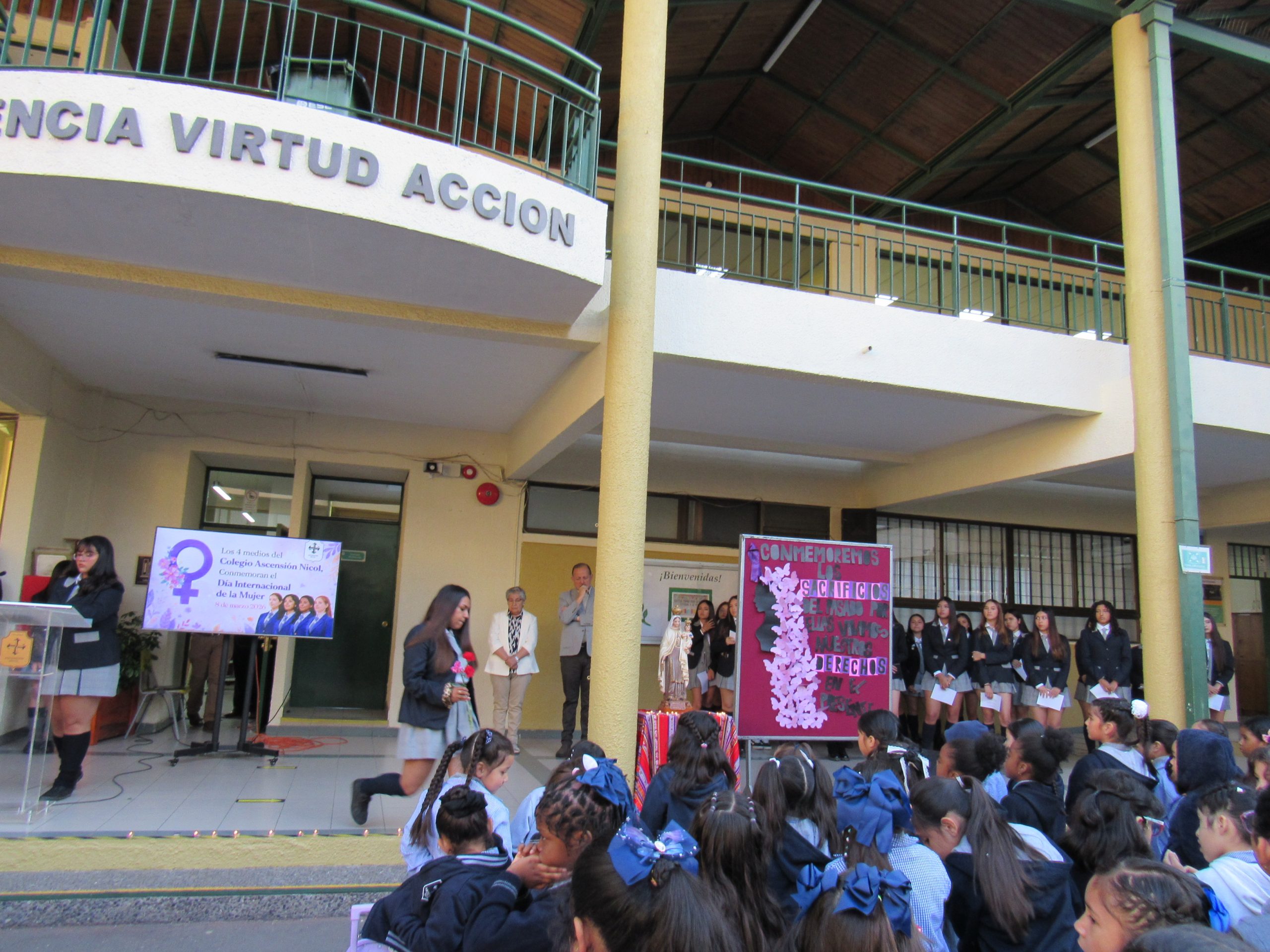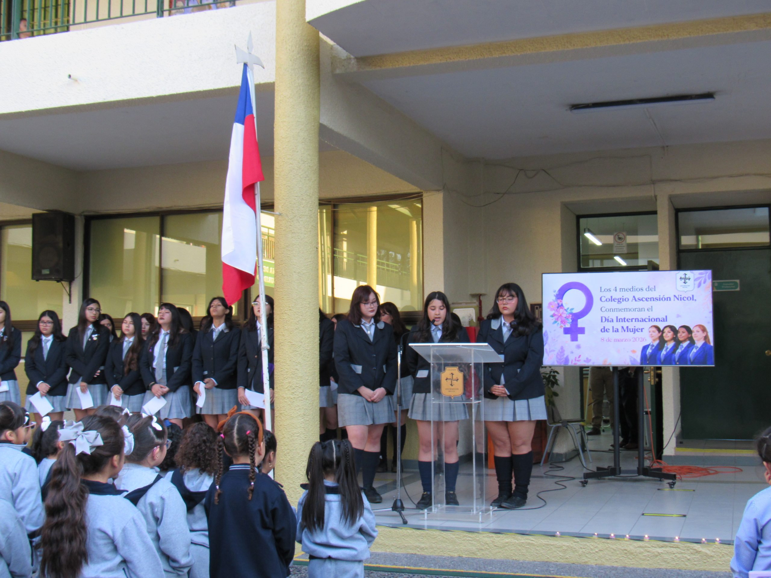 El acto conmemorativo del Día Internacional de la Mujer, realizado por los IV medios, estuvo marcado por diversos simbolismos que invitaron a la reflexión sobre la importancia de la igualdad, el respeto y el reconocimiento del rol de las mujeres en la sociedad. A través de sus presentaciones, las y los estudiantes transmitieron un mensaje de conciencia y valoración por la historia de lucha y avances alcanzados.